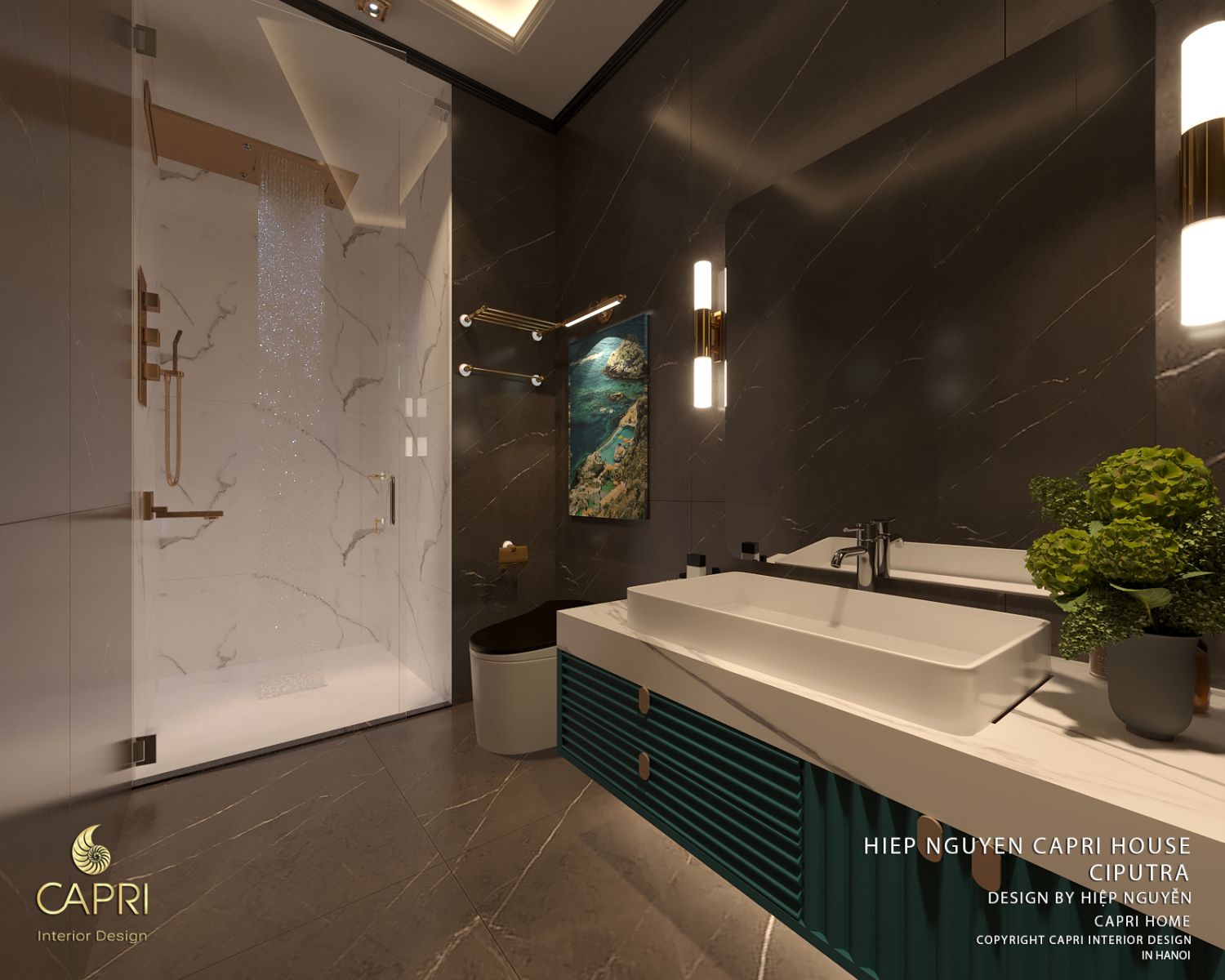 Đi kèm với phòng ngủ Master là phòng tắm riêng - một không gian spa đích thực. Sự kết hợp giữa đá marble sang trọng, gỗ ấm áp và các thiết bị vệ sinh đẳng cấp biến nơi đây thành không gian thanh lọc hoàn hảo. Mỗi sáng thức dậy hay buổi tối trở về, đây là nơi gột rửa mệt mỏi, tái tạo năng lượng cho một ngày mới tràn đầy hứng khởi.