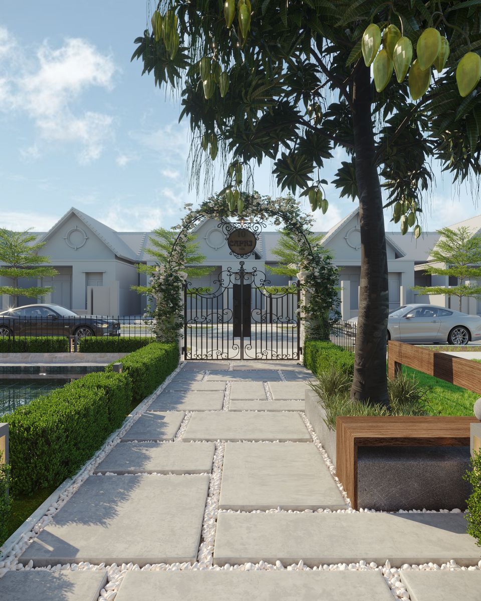 Lối vào & sân trước – Cảnh quan được chăm chút như một khu resort thực thụ