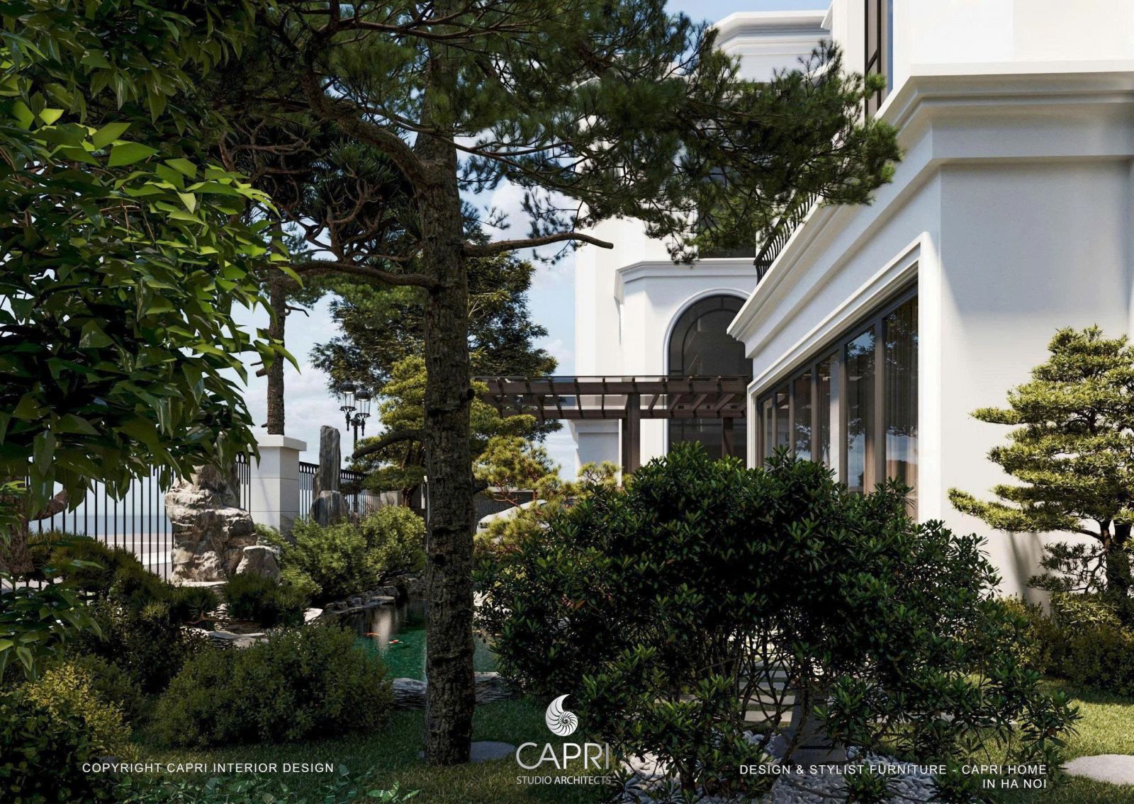 Cảnh quan sân vườn được Capri Studio Architects xem là một phần không thể tách rời của kiến trúc. Toàn bộ khu vườn được thiết kế theo triết lý Zen Garden, nơi con người tìm thấy sự cân bằng, thư thái và kết nối với thiên nhiên.