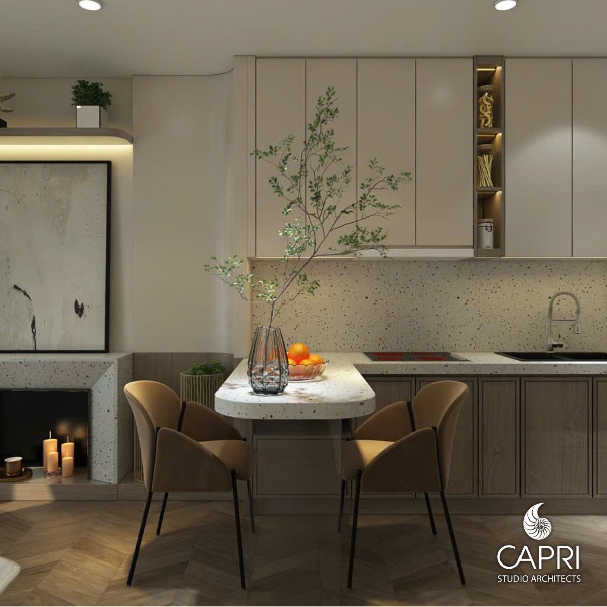 Dự án căn hộ này là minh chứng rõ ràng rằng thiết kế nội thất không chỉ dừng lại ở việc sắp đặt đồ đạc, mà là quá trình kiến tạo một môi trường sống hài hòa, cân bằng giữa thẩm mỹ và công năng. Capri Studio Architects đã khéo léo sử dụng bảng màu trung tính, kết hợp với các vật liệu giàu kết cấu như Terrazzo, vải boucle và gỗ tự nhiên, tạo nên một không gian sống hiện đại, tinh tế và đầy cảm hứng.