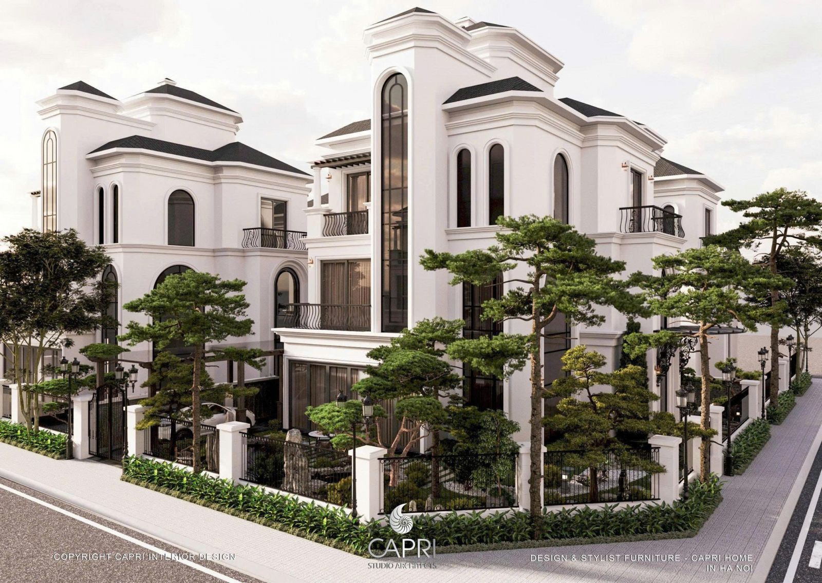 Phong cách Tân cổ điển được lựa chọn làm ngôn ngữ chủ đạo cho dự án. Đây là phong cách đòi hỏi trình độ thiết kế cao, bởi mỗi đường nét đều phải được tiết chế hợp lý để vừa giữ được tinh thần cổ điển sang trọng, vừa đáp ứng nhu cầu sống hiện đại. Capri Studio Architects ứng dụng Golden Ratio trong toàn bộ cấu trúc hình khối, từ chiều cao tầng, nhịp điệu cột, ban công đến hệ cửa vòm. Tỷ lệ này giúp công trình đạt đến sự hài hòa tự nhiên, tạo cảm giác vững chãi, bề thế nhưng không phô trương, mang đậm khí chất của những dinh thự châu Âu cổ điển.